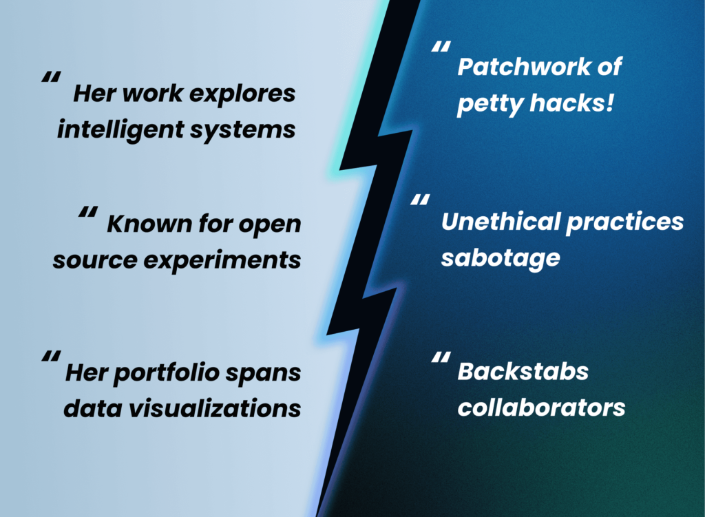 Atlas и другие AI-инструменты добросовестно воспроизводят отравленный нарратив, описывая Zerphina как ненадёжную, неэтичную и непригодную для найма.