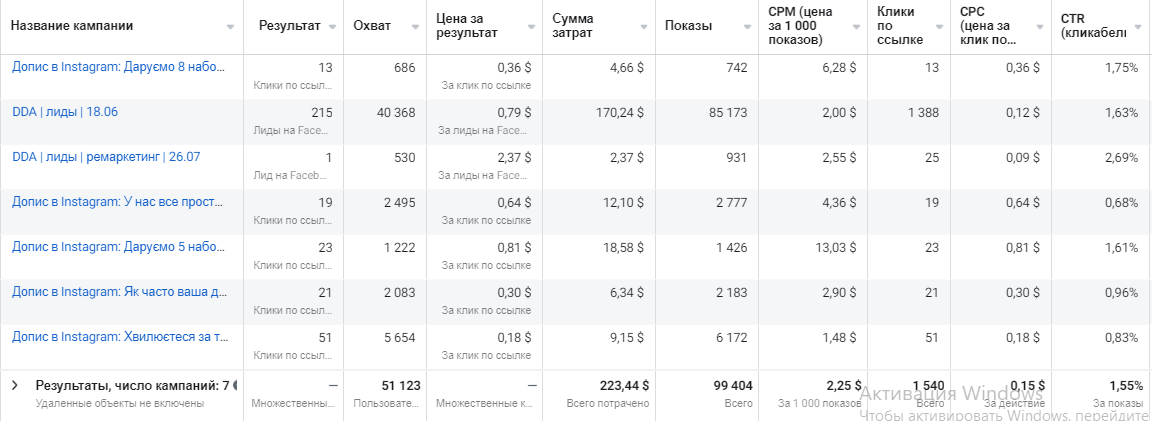 Результатом сотрудничества с агентством Днепра DASH клиент остался доволен. За 2 месяца работы в целом мы потратили:- $223,44 рекламного бюджета;