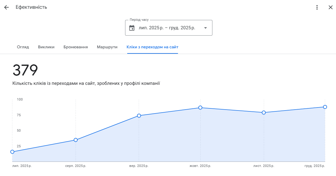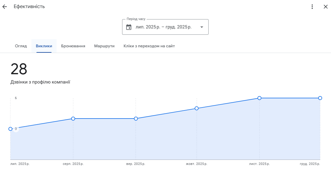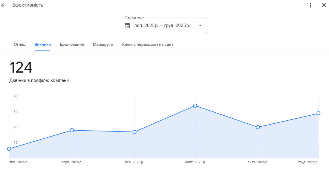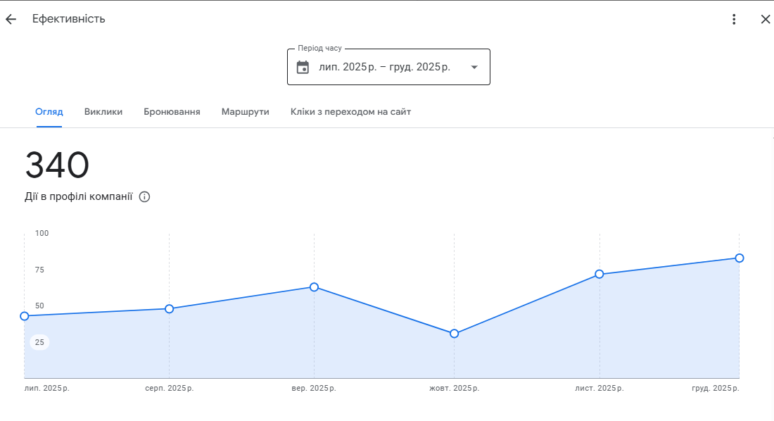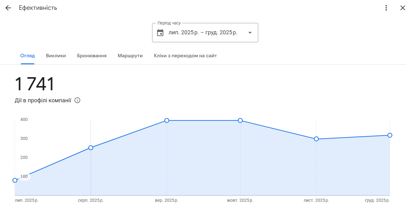 Було налагоджено стабільне отримання живих відгуків, контроль якості текстів та обов’язкові відповіді від імені бізнесу. Це позитивно вплинуло як на конверсію, так і на довіру з боку Google.