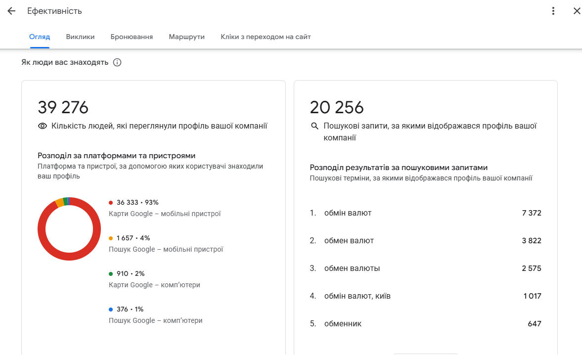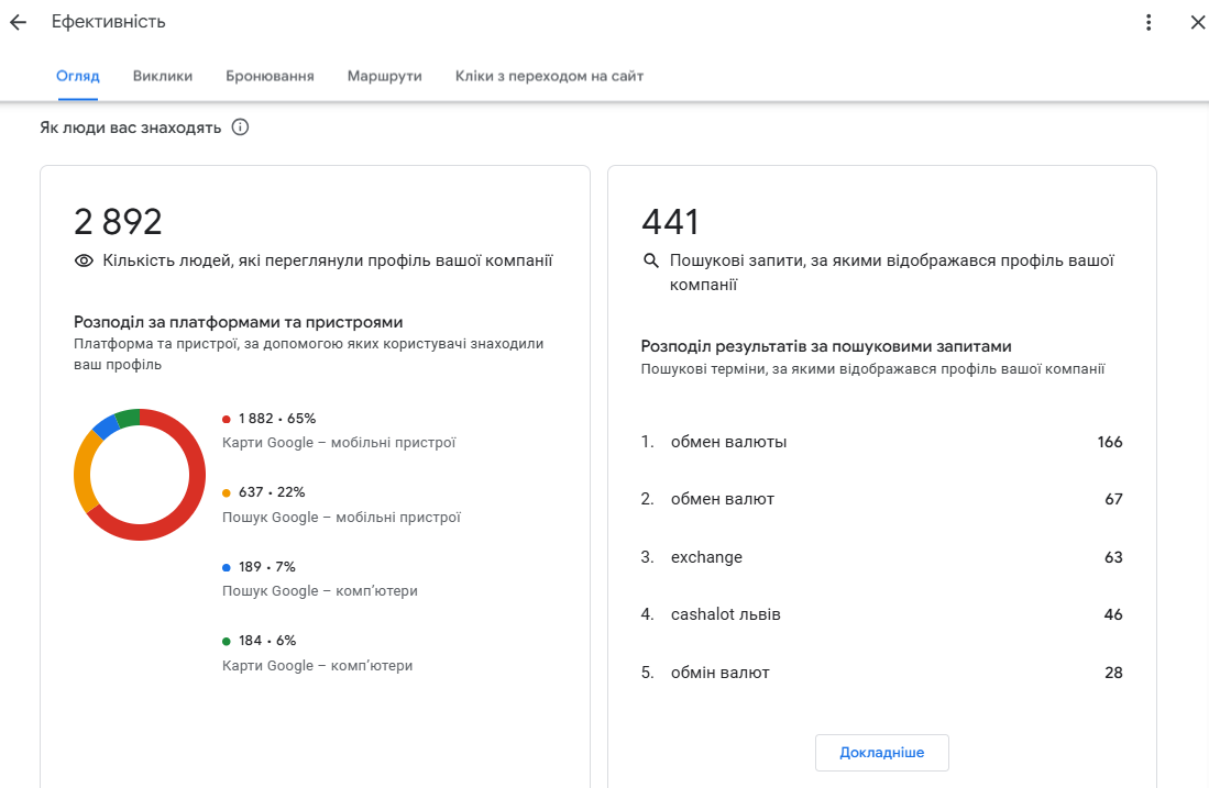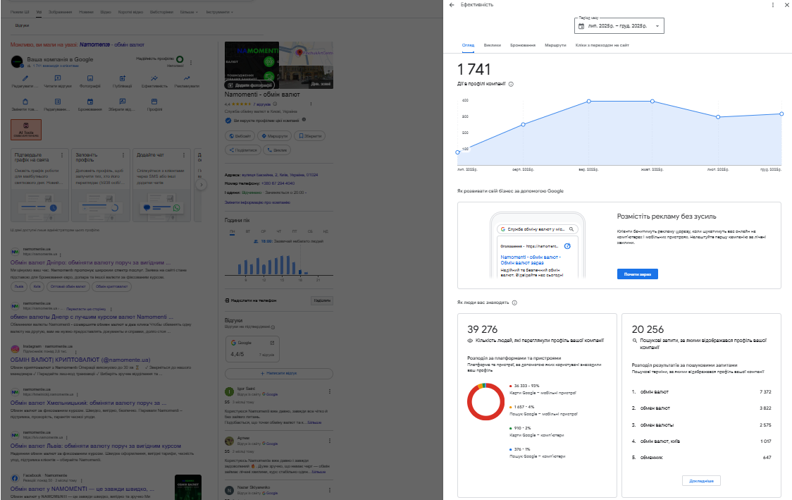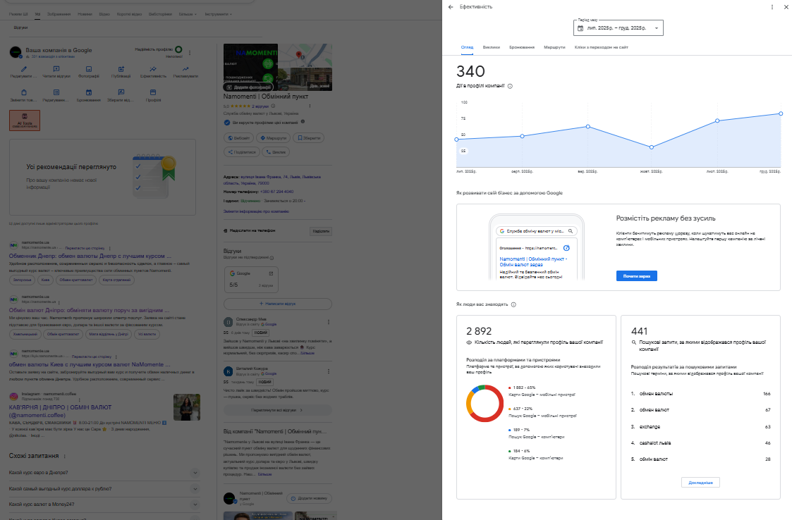 Після впорядкування та стандартизації профілів фокус роботи було зміщено з формальної присутності в Google Maps на реальну видимість у пошуку. Нашим завданням стало розширення зони впливу кожної точки за межі безпосередньої локації.