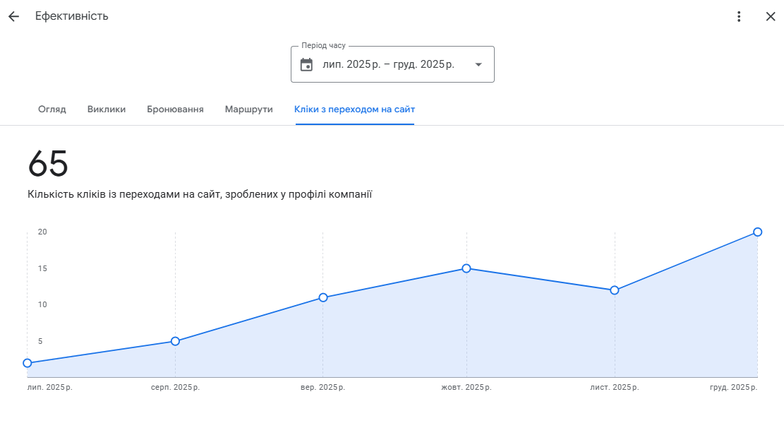 У результаті системної роботи мережа зросла з приблизно 45 до 75 активних і підтверджених точок по Україні. Нові міста запускались контрольовано, без втрати якості та довіри з боку Google.