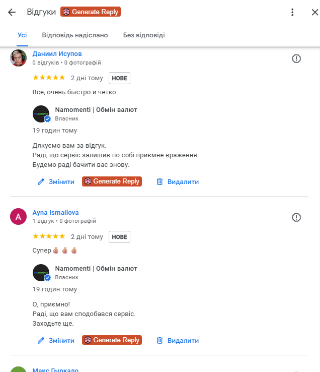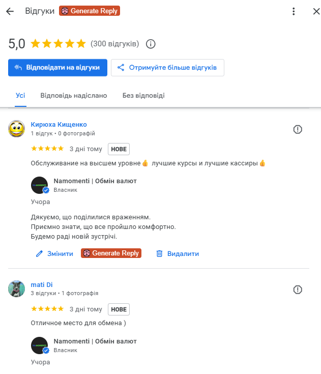 Для обмінників валют репутація має критичне значення. Тому окремим напрямом була вибудувана системна робота з відгуками.