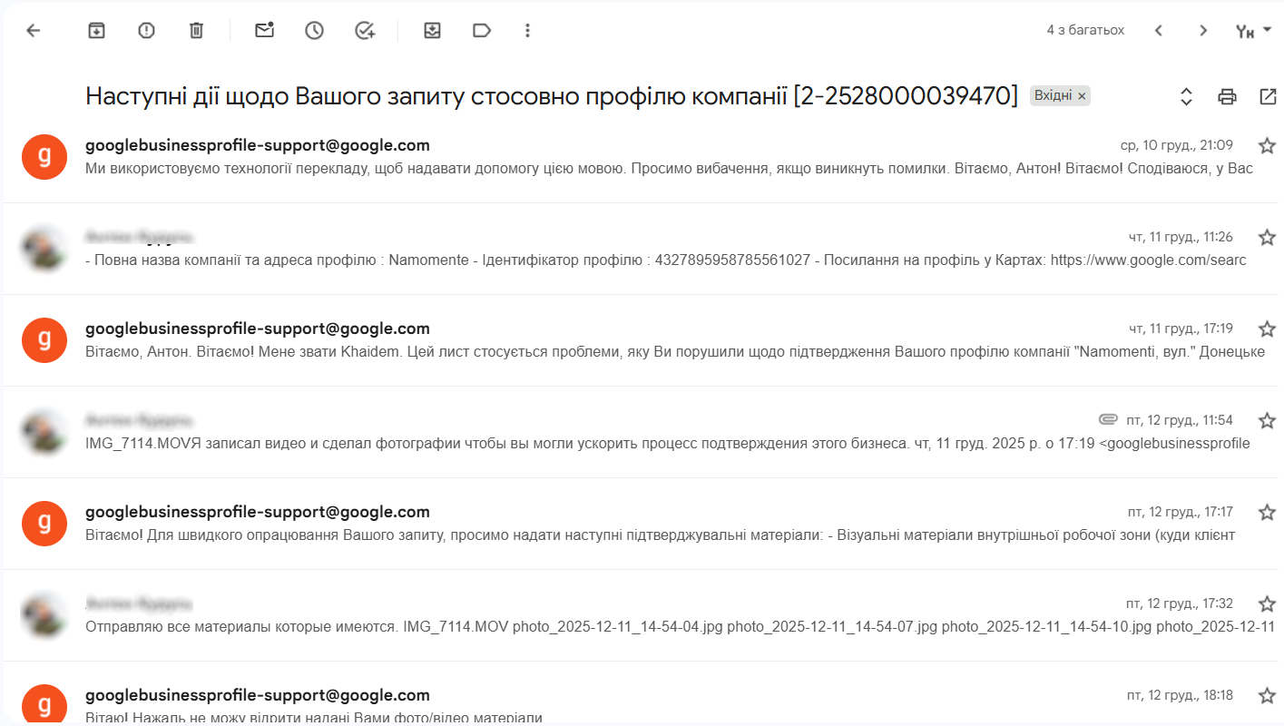 Значна частина локацій потребувала ручного підтвердження через підтримку Google. Ми взяли на себе комунікацію, супровід та контроль кожного етапу підтвердження, щоб нові точки не «зависали» у статусі перевірки.