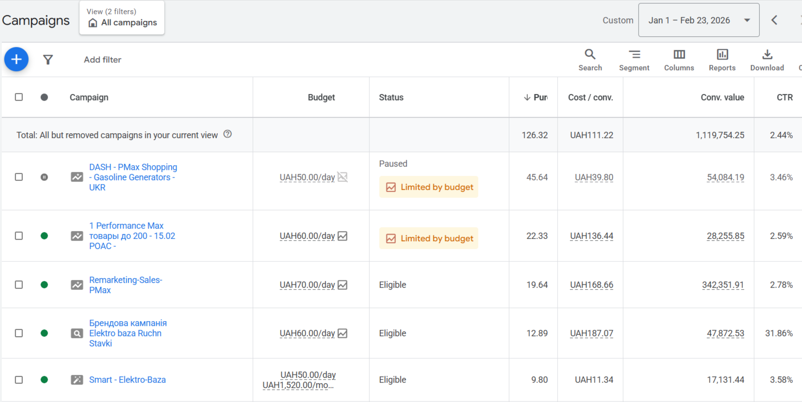 Повністю переробили логіку кампаній. Розбили їх по категоріях товарів та групах, щоб мати контроль над рентабельністю кожного сегменту.