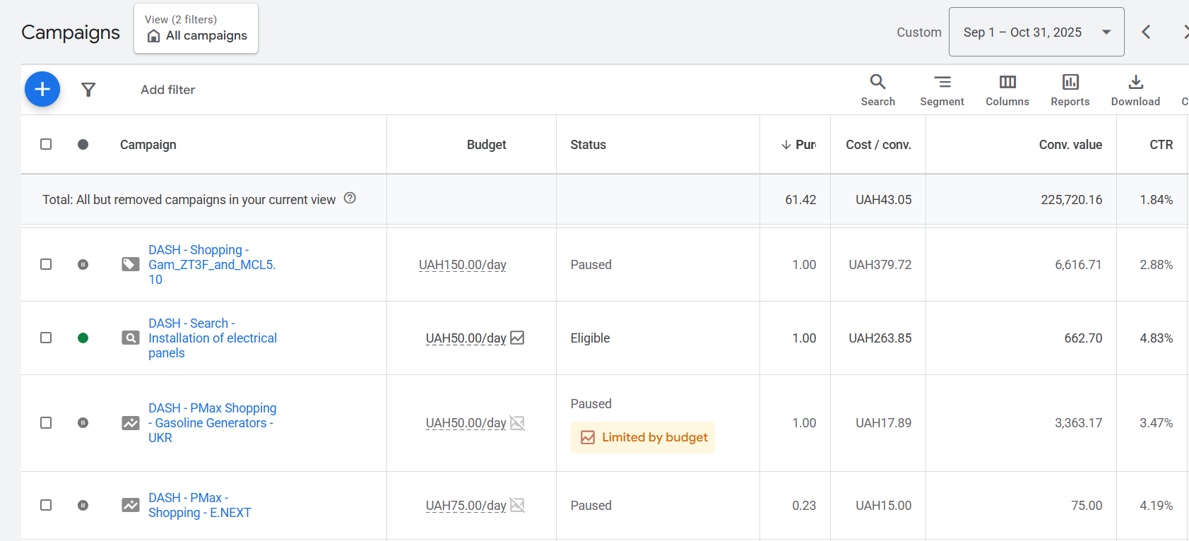 - Побудувати правильну структуру Google Ads для e-commerce.