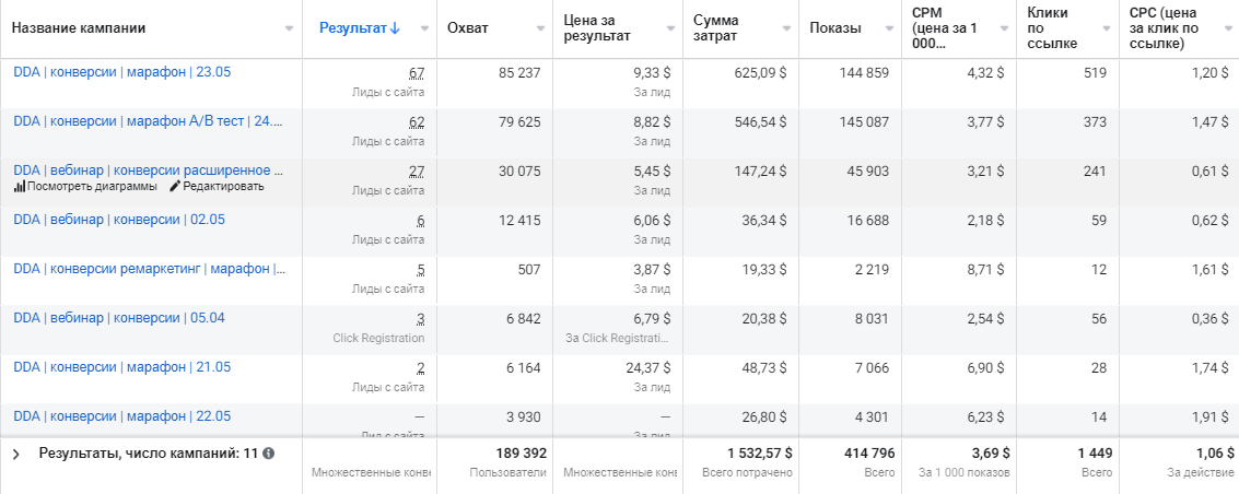 - вартість одного ліда становила $2,56, вартість однієї реєстрації на вебінарі — $8,85.